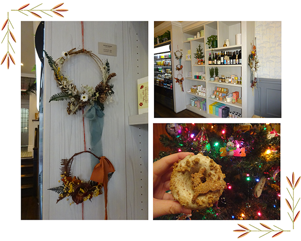 If you are able to stop by Tori’s Bakeshop, I love their new cozy shop as they renovated during the pandemic last year and love that they have a shelve for baked good and tea accessories along with a cold section for a variety of selection of cold drinks and more. I was excited to stop by mid-December to pick up my delicious and festive Holiday treats!! Check out below some of the photos of their new cozy bakeshop,
