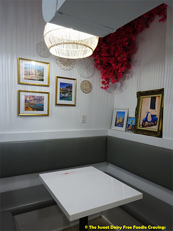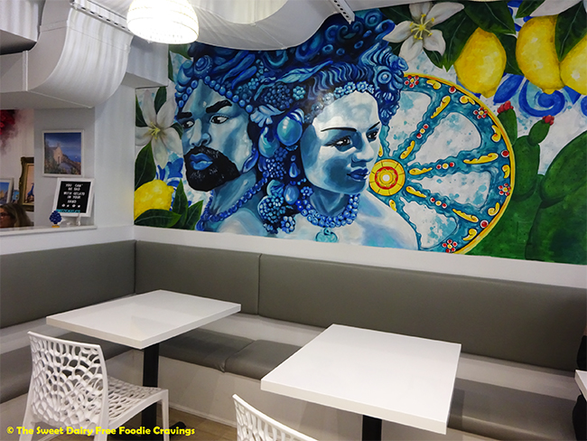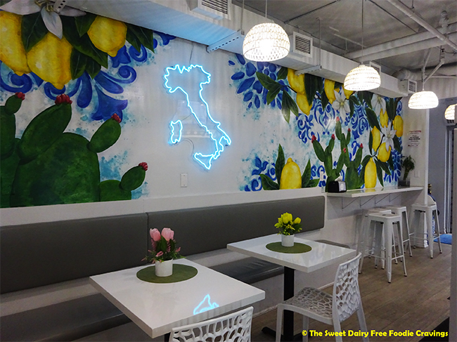 The interior for the Yonge and Eglinton location is simply beautiful, elegant and a reflection and inspiration of Italy with the blue and white colours. I love the interior lighting fixets there too. It is actually a spacious gelato shop café compared to others as they have quite a number of tables to sit and a huge booth at the back, which I managed to sit during my 2nd visit when it was less busy. Yes they usually are quite busy if you go during their busy times and I been lucky twice I was there when it was less busy, but it’s definitely worth the wait as they have the best vegan gelato. You won’t be disappointed!!